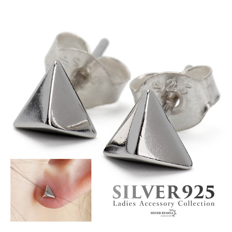 三角ピアス 小ぶりピアス シルバー925 スタッドピアス 両耳用 2点セット 三角 図形 小さめ シルバー 金属アレルギーフリー