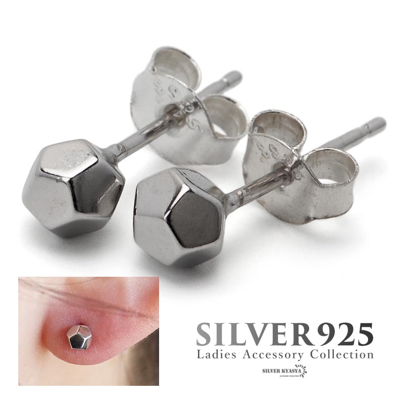 多角形ピアス 小ぶりピアス シルバー925 スタッドピアス 両耳用 2点セット ダイス 小さめ シルバー 金属アレルギーフリー