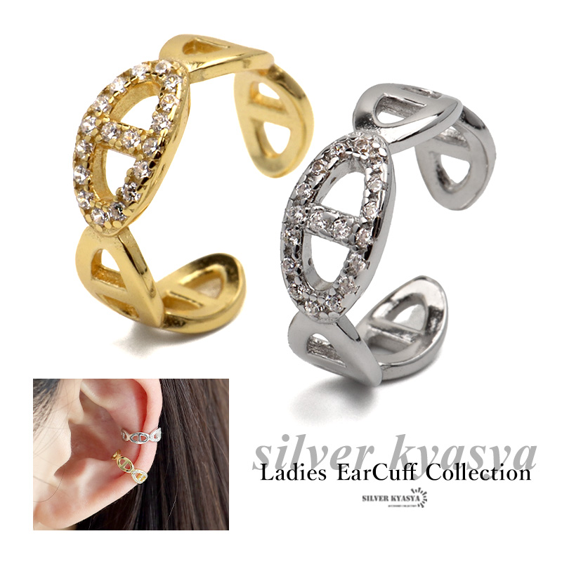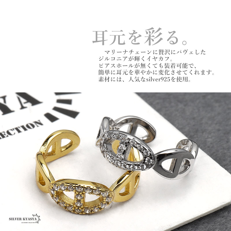 イヤーカフ 金属アレルギー対応 シルバー925 S925 18KGP CZ ジルコニア マリーナ アンカー チェーン ゴールド シルバー イヤークリップ ノンホール 片耳用
