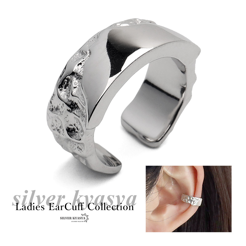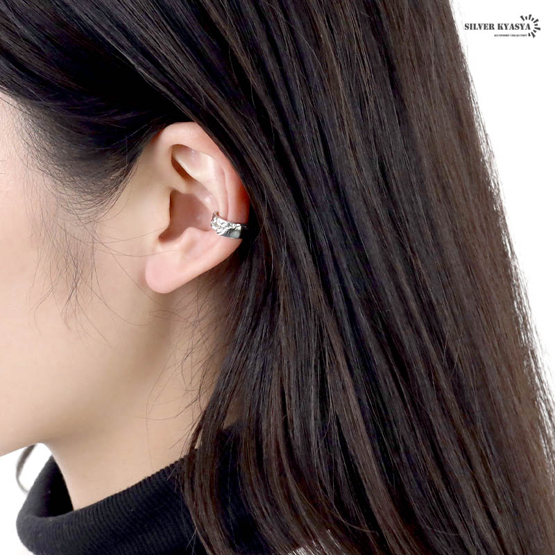 イヤーカフ シンプル 上品 イヤリング イヤカフ シルバー925 メタル 厚み 槌目 加工 シルバー 片耳用 金属アレルギー対応