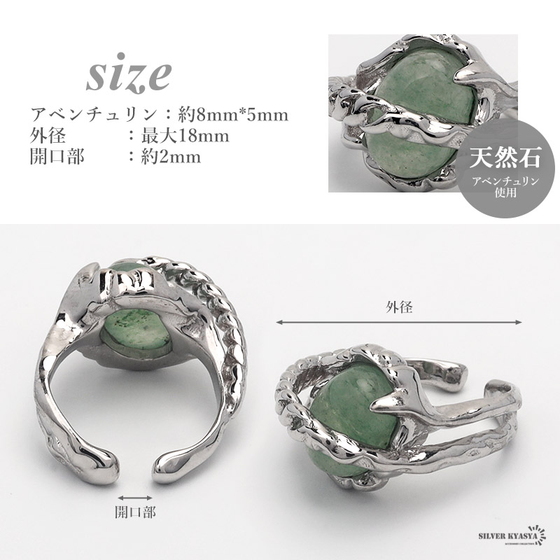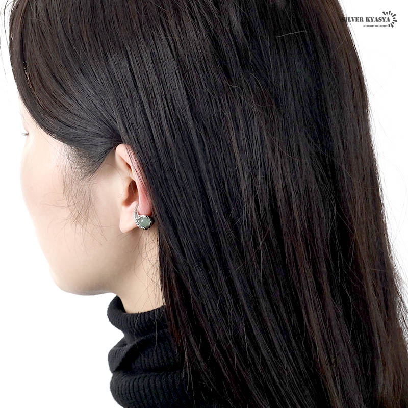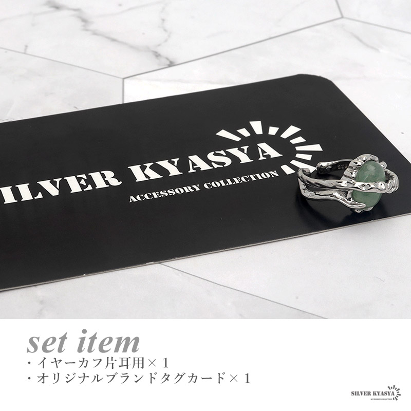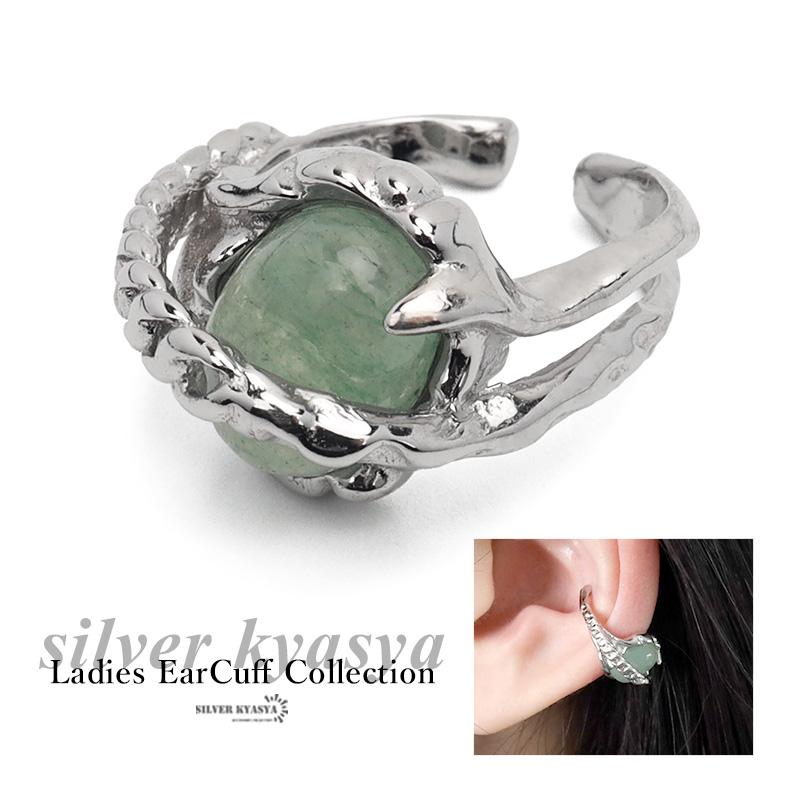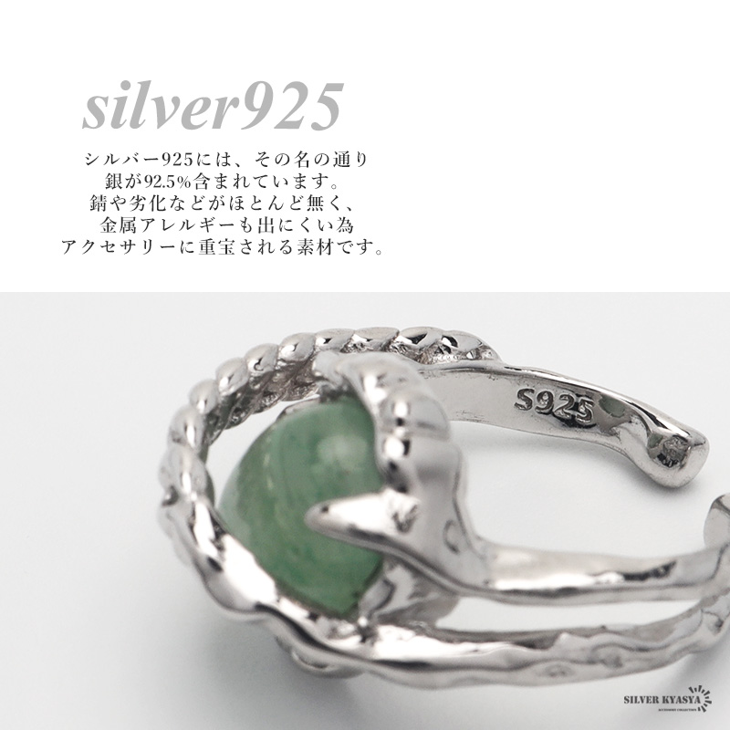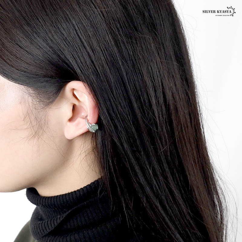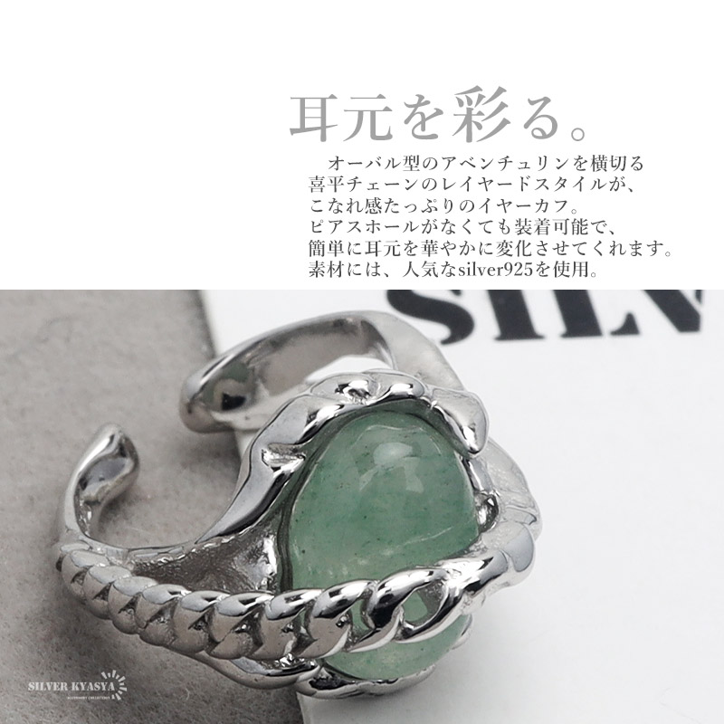 イヤーカフ グリーン イヤリング イヤカフ シルバー925 アベンチュリン 天然石 2連 シルバー 片耳用 金属アレルギー対応