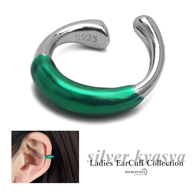 イヤーカフ グリーン 緑 イヤリング イヤカフ シルバー925 樹脂 メタル バイカラー シルバー 片耳用 金属アレルギー対応