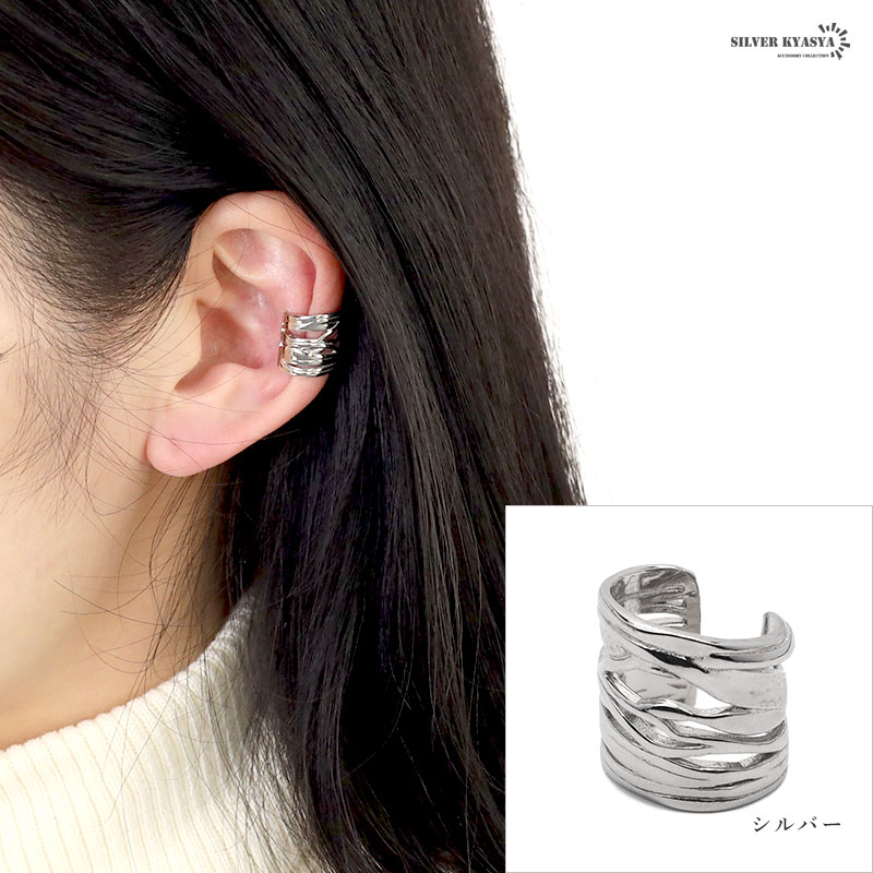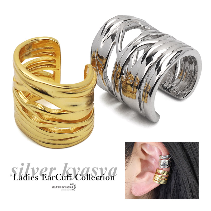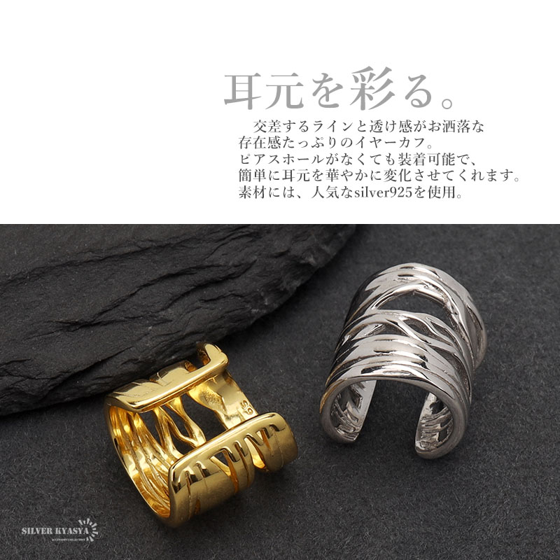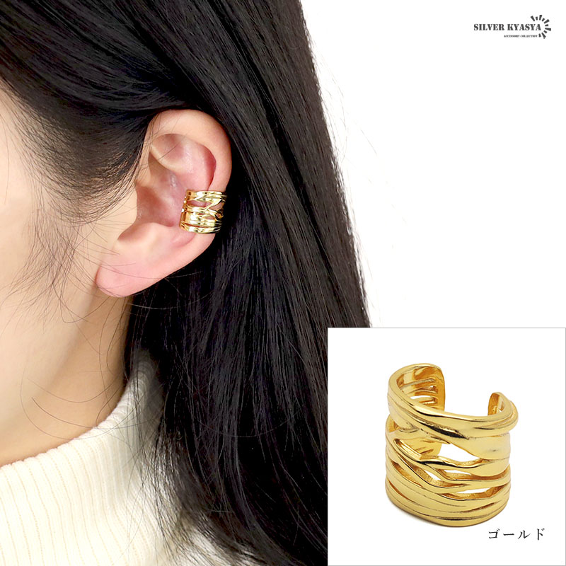 イヤーカフ レイヤード イヤリング イヤカフ リング シルバー925 silver925 18KGP 18金 幅広 メタル 透かし ゴールド シルバー 片耳用 金属アレルギー対応
