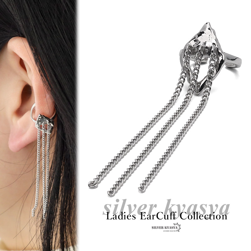 イヤーカフ フリンジ イヤリング イヤカフ シルバー925 ロング 喜平 チェーン 揺れる メタル ユニーク シルバー 片耳用