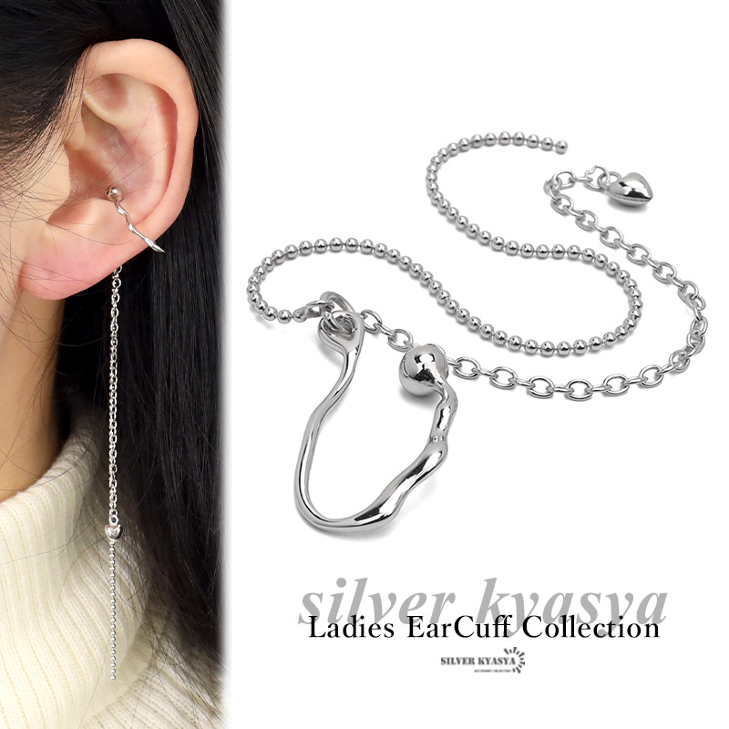 イヤーカフ フリンジ イヤリング イヤカフ シルバー925 ロング チェーン 揺れる メタル ワイヤー シルバー 片耳用