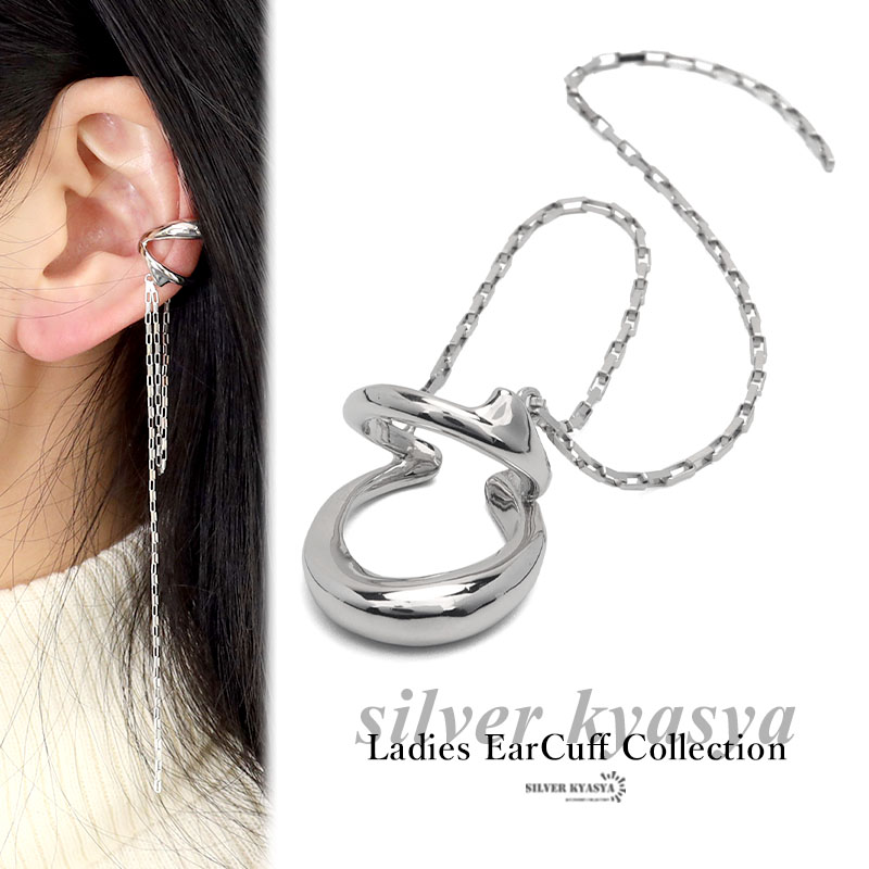 イヤーカフ フリンジ イヤリング イヤカフ シルバー925 ロング チェーン 揺れる メタル 2連 変形 ライン シルバー 片耳用
