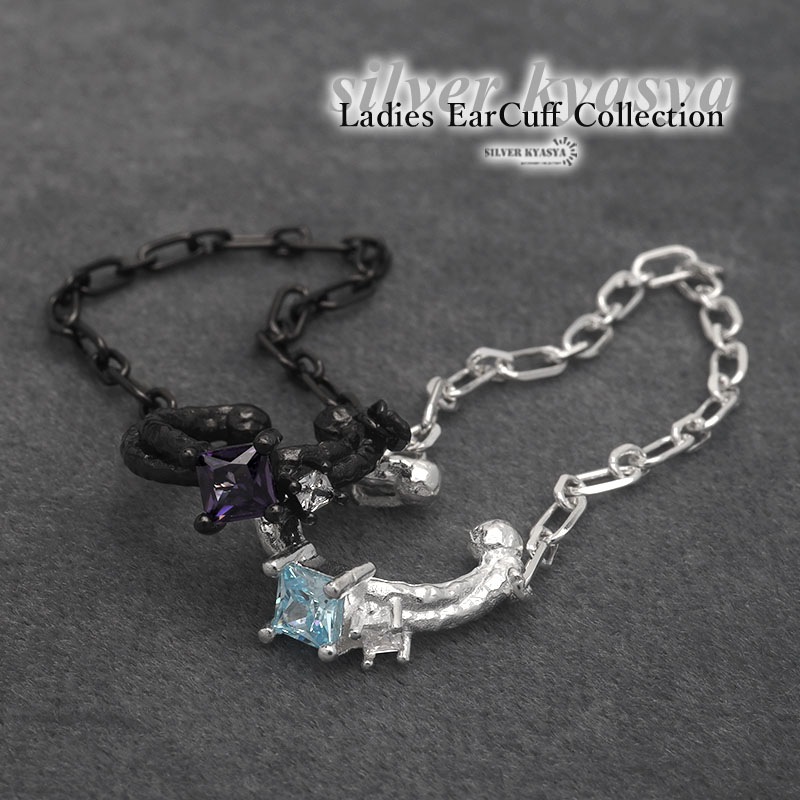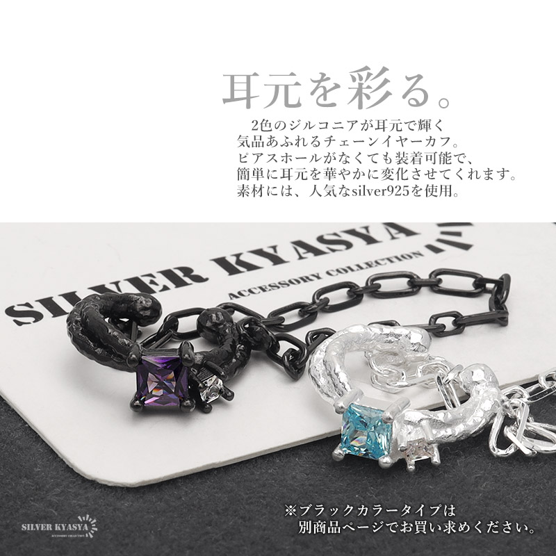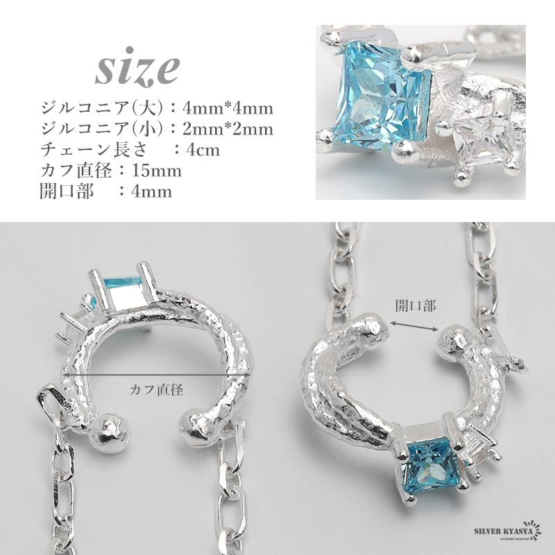イヤーカフ チェーン イヤリング イヤカフ シルバー925 CZ キュービックジルコニア 揺れる マット 槌目 シルバー 片耳用