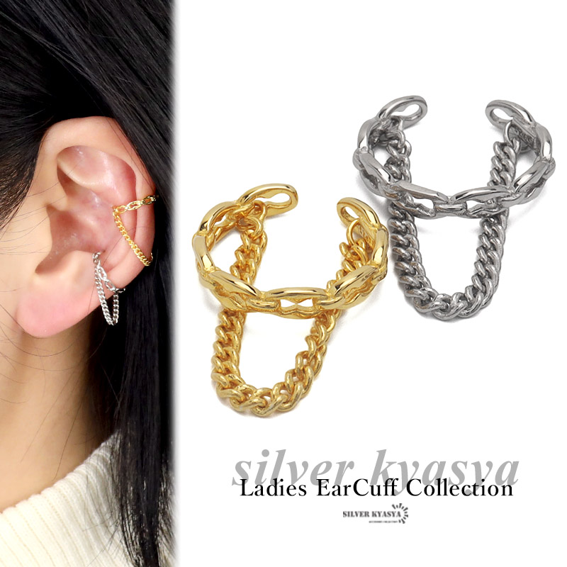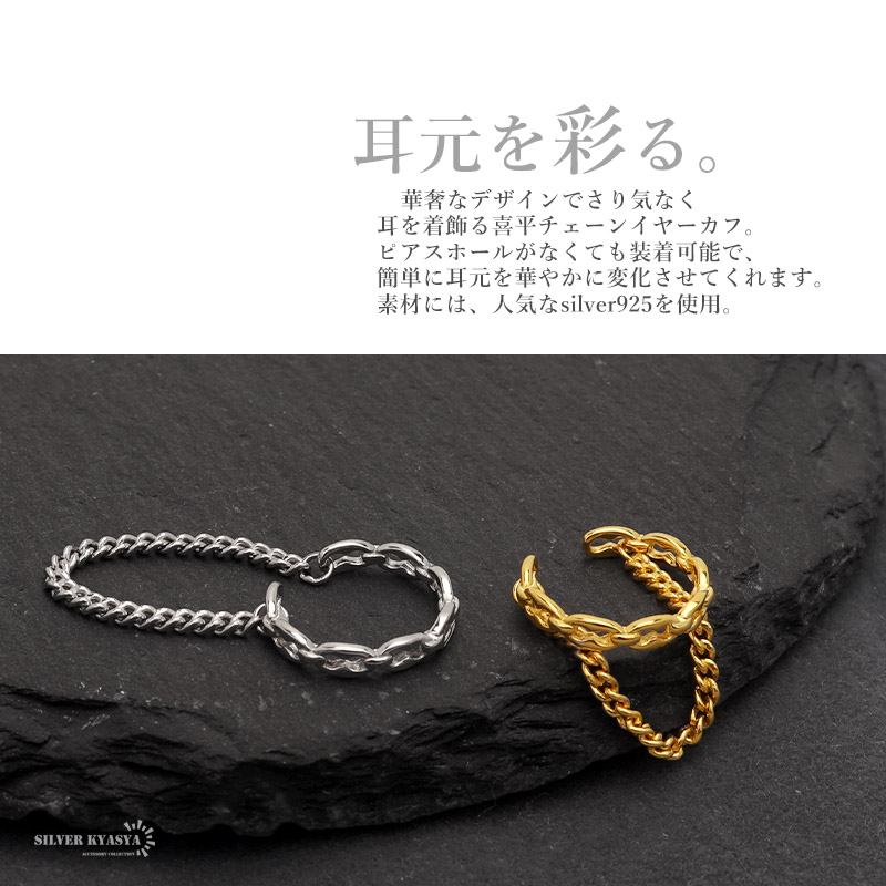 イヤーカフ チェーン イヤリング イヤカフ シルバー925 silver925 18KGP 18金 喜平チェーン 揺れる 華奢 小さめ ゴールド シルバー 片耳用 金属アレルギー対応