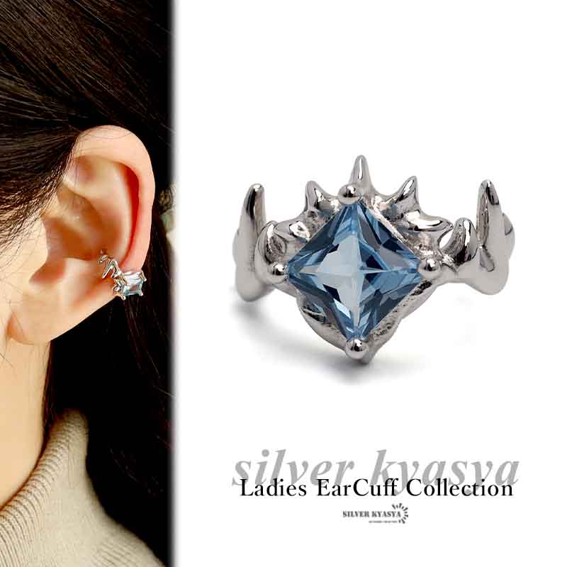 シルバーイヤーカフ レディース シルバー925 ブルー ジルコニア スクエア ストーン 片耳用 金属アレルギー対応 一粒ジュエリー
