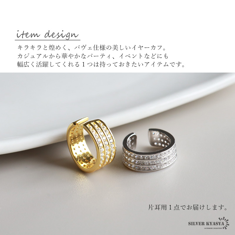 シルバー925 ラインイヤーカフ ジルコニアイヤーカフ キラキラ 3連イヤーカフ ゴールド 18KGP イヤカフ レディース 女性 金属アレルギー対応 片耳