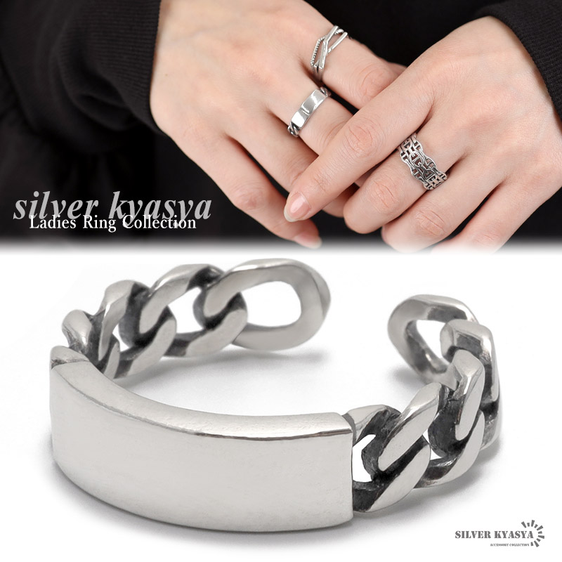 リング レディース シルバー925 フリーサイズ チェーン 喜平 プレート シルバー 銀色 指輪 金属アレルギー