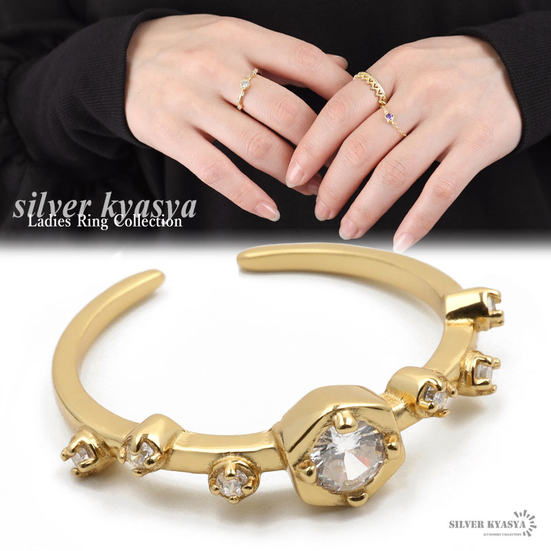 リング レディース シルバー925 フリーサイズ 18k ゴールド 金色 CZ 細め シルバー 銀色 金属アレルギー