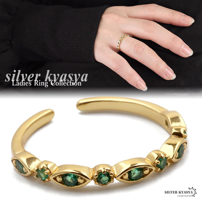 リング レディース シルバー925 フリーサイズ 18k ゴールド 金色 CZ 細身 細め シルバー 銀色 金属アレルギー