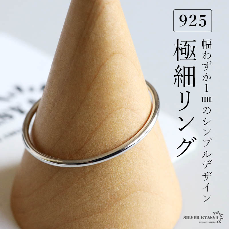 シルバー925 極細リング シンプルリング レディース S925 甲丸リング 華奢リング プレーンリング 細身 指輪 幅1mm 重ね付け シルバー 銀 金属アレルギー対応