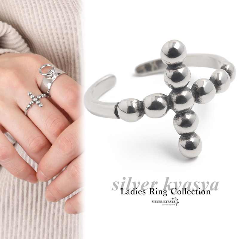 リング レディース シルバー925 フリーサイズ クロス モチーフ シルバー 銀色 指輪 金属アレルギー