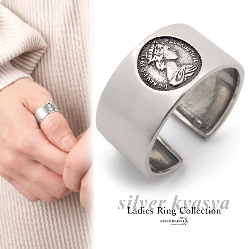 リング レディース シルバー925 フリーサイズ 平打リング 太幅 幅広 エリザベス シルバー 銀色 金属アレルギー