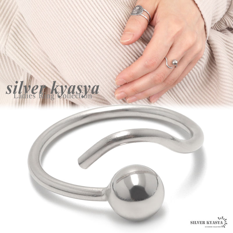 リング レディース シルバー925 フリーサイズ ボール 細身 細め フォークリング シルバー 銀色 金属アレルギー