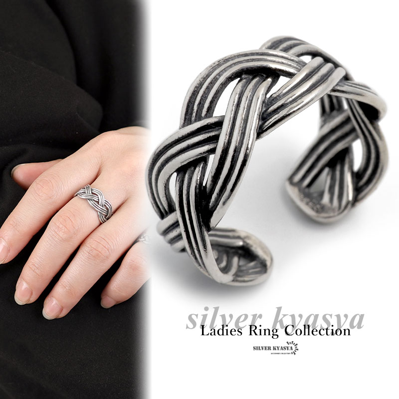 リング レディース シルバー925 フリーサイズ 編み込み 三つ編み ライン シルバー 銀色 指輪 金属アレルギー