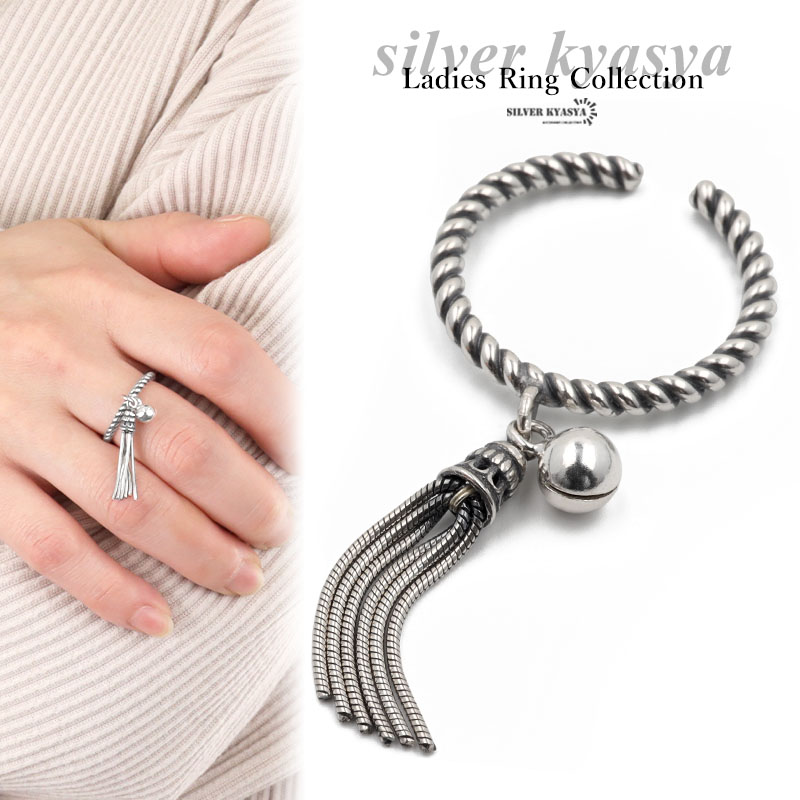 リング レディース シルバー925 フリーサイズ フリンジ 鈴 ロープ 揺れる シルバー 銀色 指輪 金属アレルギー