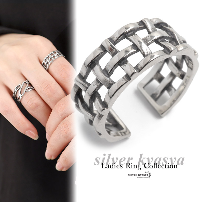 リング レディース シルバー925 フリーサイズ 編み込み メッシュ シルバー 銀色 金属アレルギー