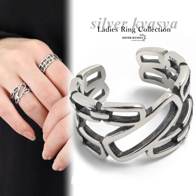 リング レディース シルバー925 フリーサイズ モダン チェーン モチーフ 二連 シルバー 銀色 指輪 金属アレルギー