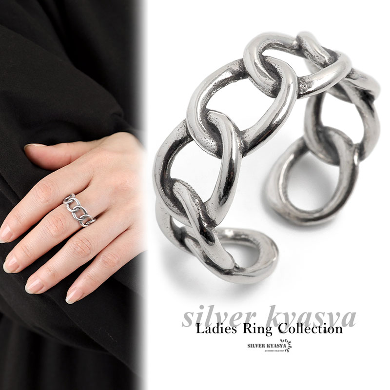 リング レディース シルバー925 フリーサイズ チェーン 喜平 モチーフ シルバー 銀色 金属アレルギー