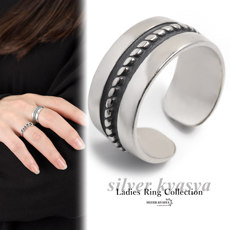 リング レディース シルバー925 フリーサイズ 太め 太幅 ロープ シルバー 銀色 金属アレルギー