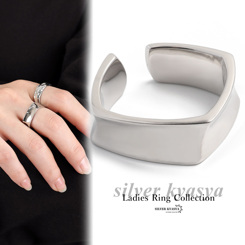 リング レディース シルバー925 フリーサイズ スクエア シルバー 銀色 金属アレルギー
