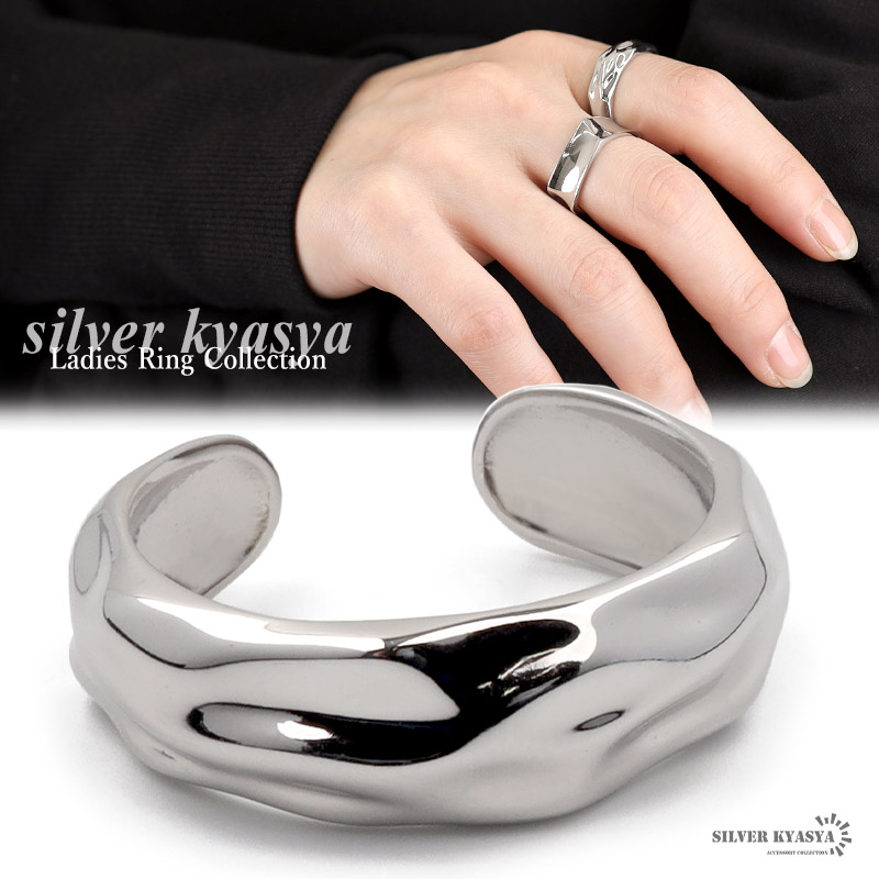 リング レディース シルバー925 フリーサイズ 槌目 シルバー 銀色 金属アレルギー