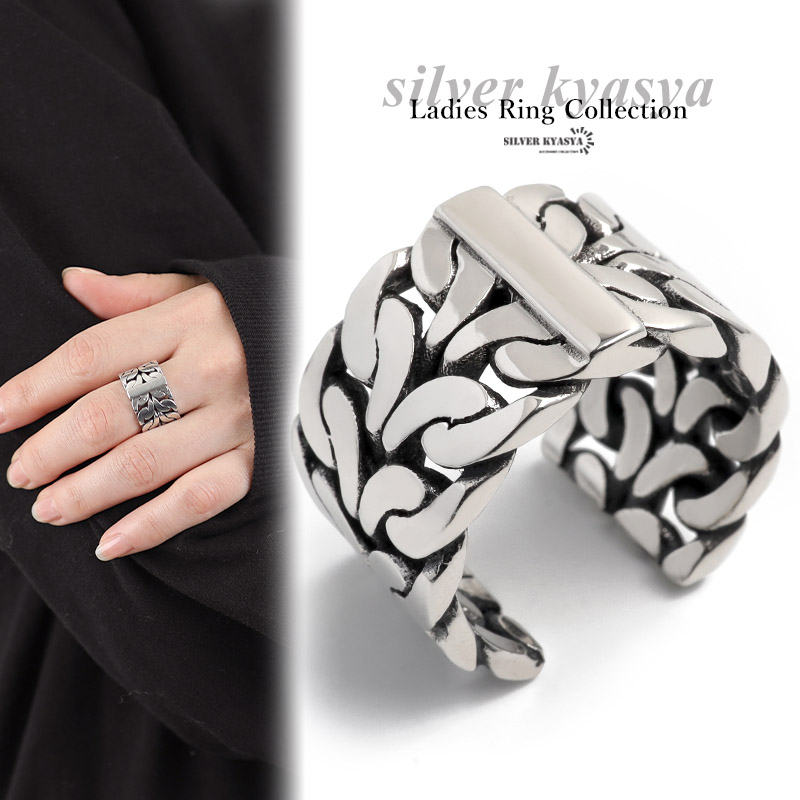 リング レディース シルバー925 フリーサイズ チェーン 喜平 モチーフ 太幅 幅広 ごつめ シルバー 銀色 金属アレルギー