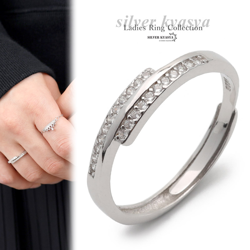 シルバー925 リング 指輪 レディース シルバー CZリング 二重 金属アレルギー フリーサイズ
