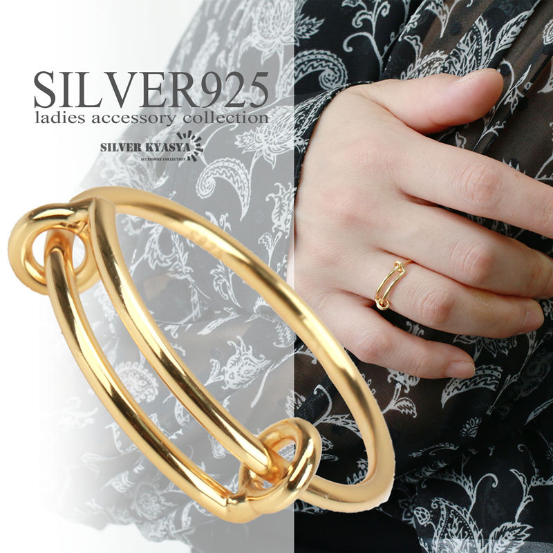 シルバー925リング ゴールド サークル 18KGP 18金 2連 指輪 金 銀 金属アレルギー フリーサイズ