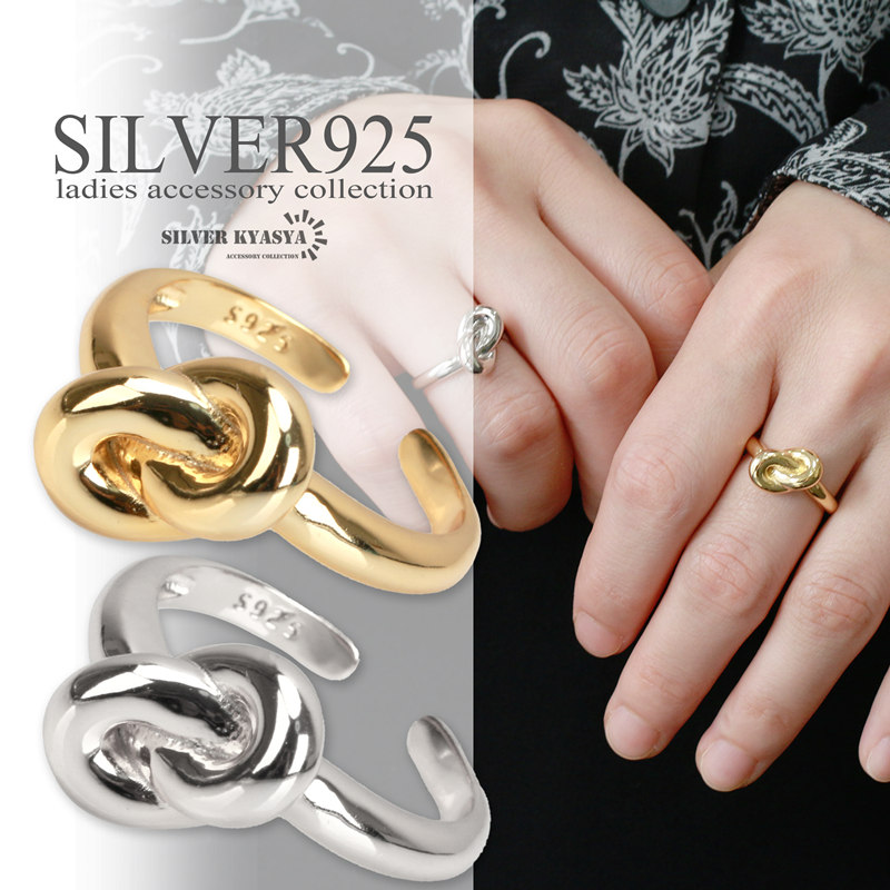 シルバー925 ノットリング 結び シンプルリング 18K ゴールド 指輪 gold 銀 silver 金属アレルギー対応 オープンリング フリーサイズ