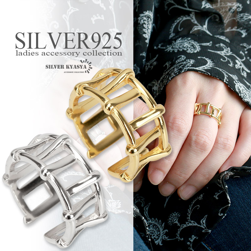 シルバー925 デザインリング 指輪 18K ゴールド 指輪 銀 silver gold はしご アレルギー対応 フリーサイズ オープンリング