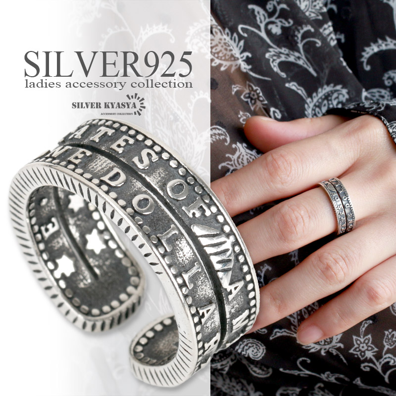 シルバー925 コインリング 指輪 銀 ワンダラー 1ドル アメリカ USA アレルギー対応 フリーサイズ