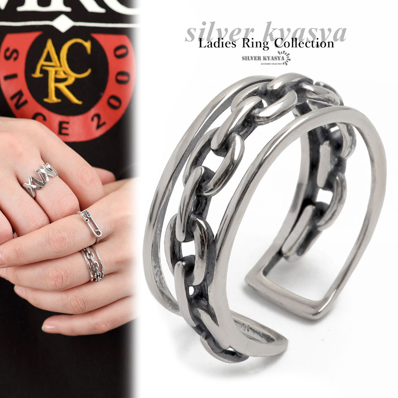 リング レディース シルバー925 小豆チェーン 3連リング シルバー 銀色 指輪 フリーサイズ 金属アレルギー