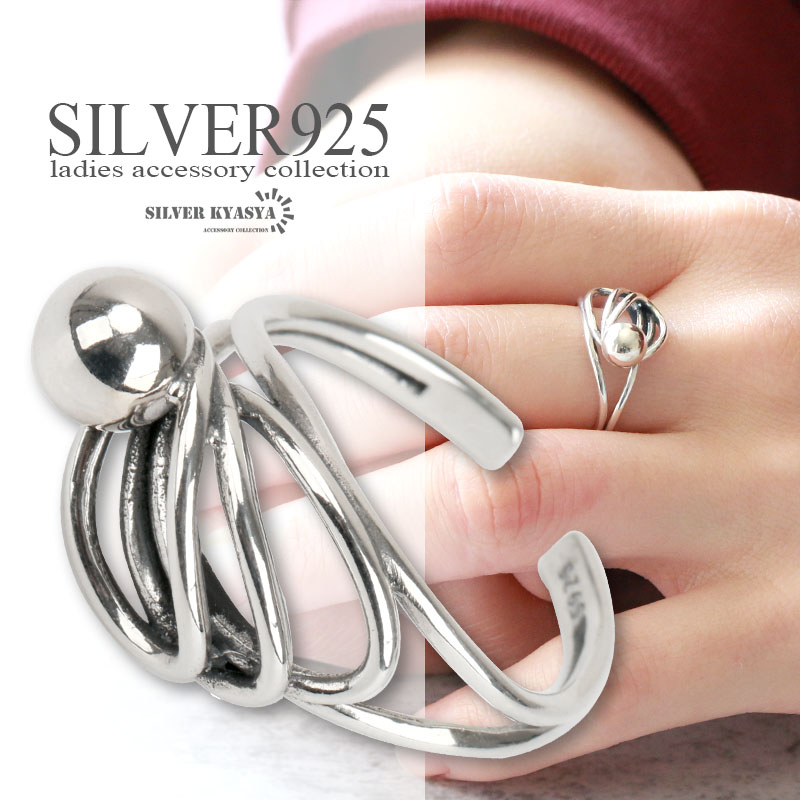 シルバー925 ボールリング 指輪 オーブ フラワー 花 銀 アレルギー対応 フリーサイズ
