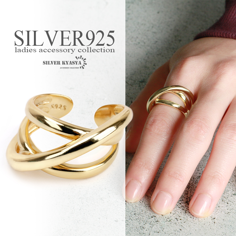 3連リング シルバー925 指輪 ゴールド リング 18KGP 18金 ごつめ アレルギー対応 フリーサイズ