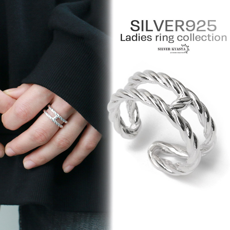 2連リング シルバー925 指輪 リング ツイスト ねじり ダブルライン 金属アレルギー フリーサイズ