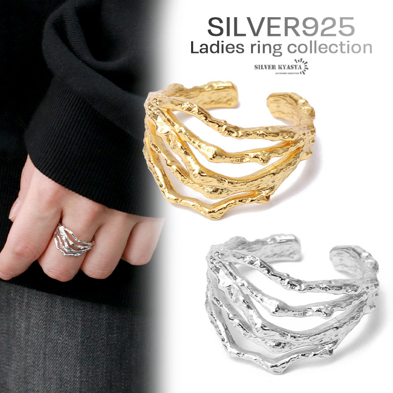 アンティーク調リング シルバー925 指輪 ゴールド シルバー シンプル リング 18K GP S925 金属アレルギー対応 フリーサイズ オープンリング