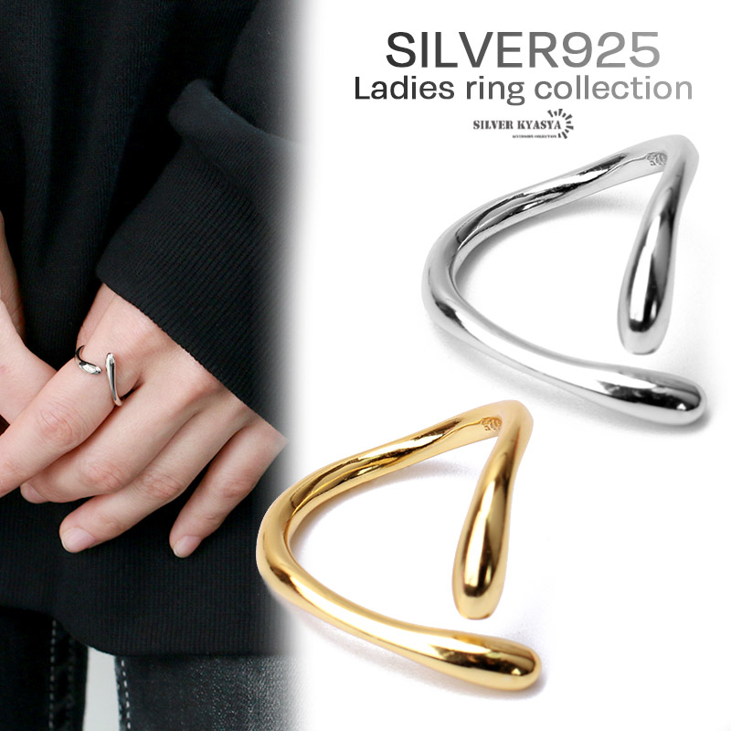 シンプルリング シルバー925 指輪 ゴールド シルバー ドロップ アンティーク調 18K GP 金属アレルギー対応 フリーサイズ オープンリング
