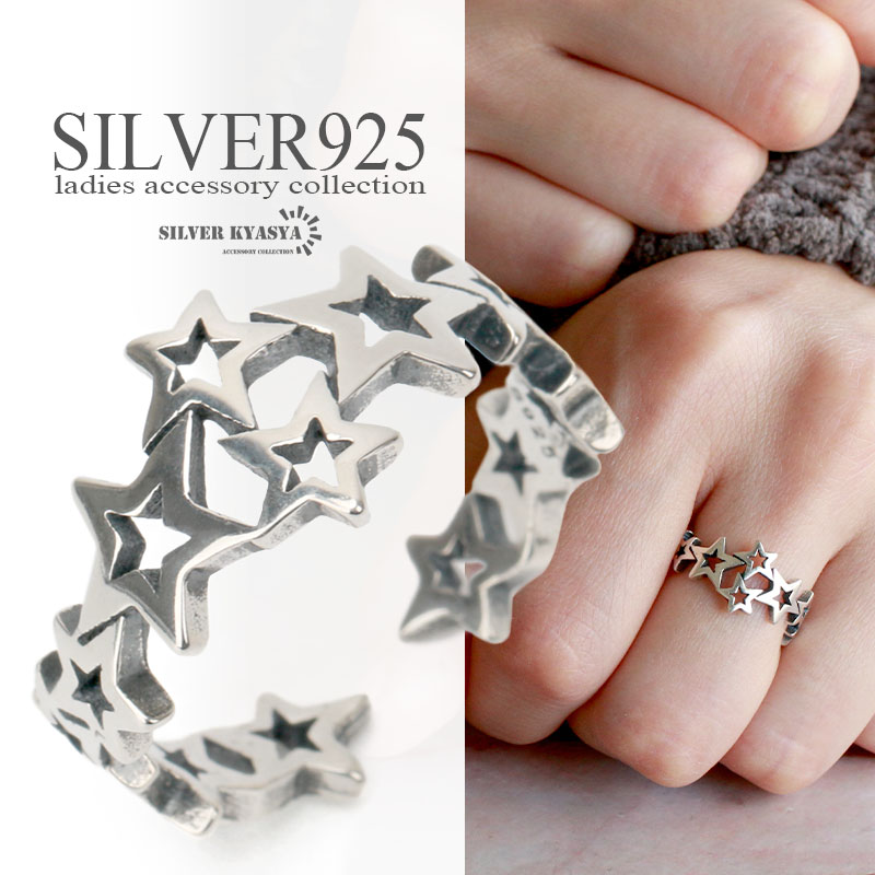 シルバー925 スター リング 指輪 流れ星 シューティングスター フリーサイズ 金属アレルギー 銀
