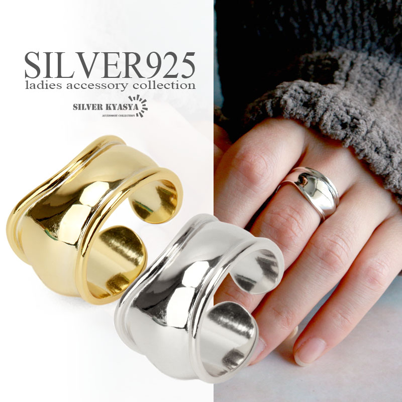 シルバー925 ワイドリング 指輪 太め 太幅 フリーサイズ 鏡面仕上げ 金属アレルギー対応 銀 オープンリング おしゃれ S925 シンプル