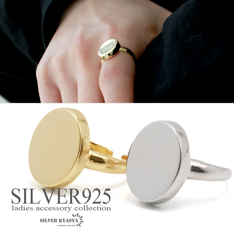 シルバー925 印台リング 指輪 シンプル 18K GP ゴールド 金 フリーサイズ 鏡面仕上げ アレルギー対応 銀 オープンリング S925