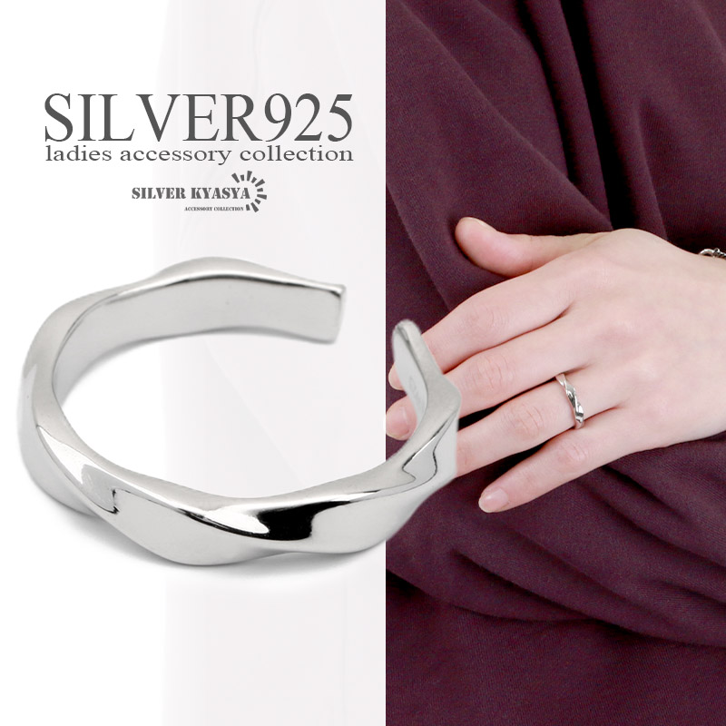 シルバー925 ツイストリング 細身 ねじれ スクロール フリーサイズ 金属アレルギー 銀