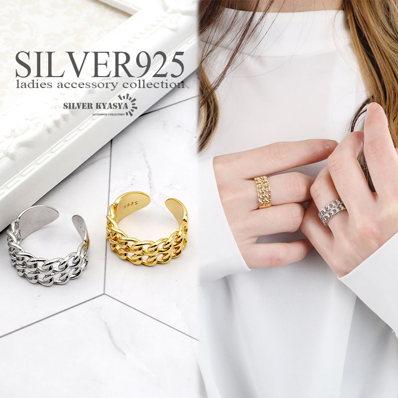 シルバー925 2連 喜平チェーンリング ゴールド シルバー 指輪 キヘイチェーン 18K GP S925 ワイドリング 金属アレルギー対応 オープンリング