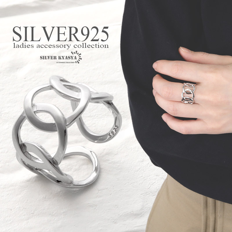 シルバー925リング 幅広 シルバー チェーン風 サークル 指輪 金属アレルギー フリーサイズ