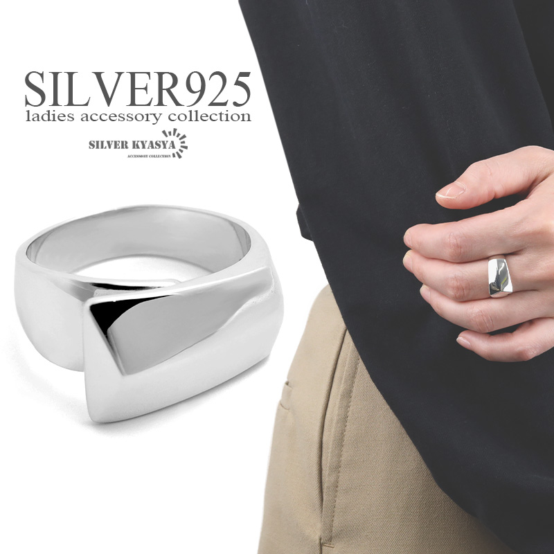 シルバー925リング 幅広 シルバー 幾何学 指輪 金属アレルギー フリーサイズ
