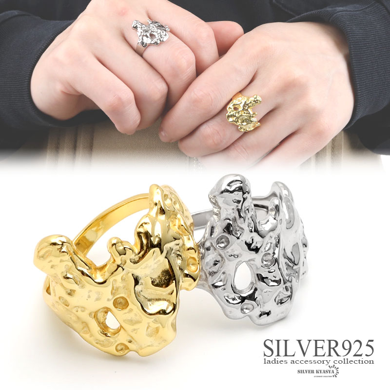 シルバー925リング S925 18K GP シルバー ゴールド 溶岩模様 凹凸 でこぼこ 指輪 金属アレルギー対応 オープンリング