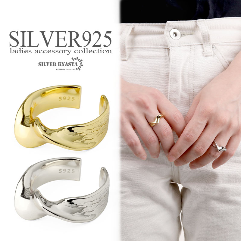 シルバー925 ツイストリング ねじり 木目 SILVER925 ゴールド シルバー 18K GP リング フリーサイズ オープンリング 金属アレルギー対応